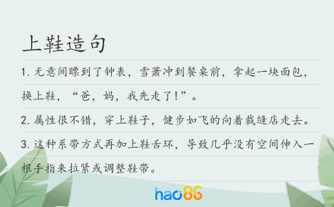 复制好查造句频道为您提供2025年的上鞋造句相关内容,造句频道小编原创了45条的上鞋造句内容,频道内容适合一二年级的小学生参考!!