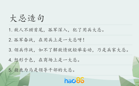 复制好查造句频道为您提供2026年的大忌造句相关内容,造句频道小编原创了70条的大忌造句内容,频道内容适合一二年级的小学生参考!!