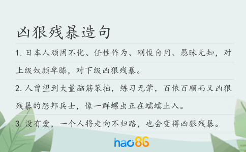 复制好查造句频道为您提供2025年的凶狠残暴造句相关内容,造句频道小编原创了8条的凶狠残暴造句内容,频道内容适合一二年级的小学生参考!!