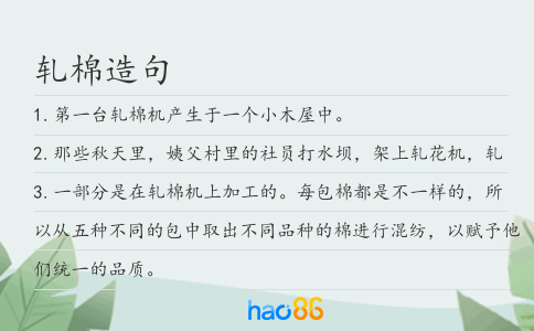 复制好查造句频道为您提供2025年的轧棉造句相关内容,造句频道小编原创了10条的轧棉造句内容,频道内容适合一二年级的小学生参考!!