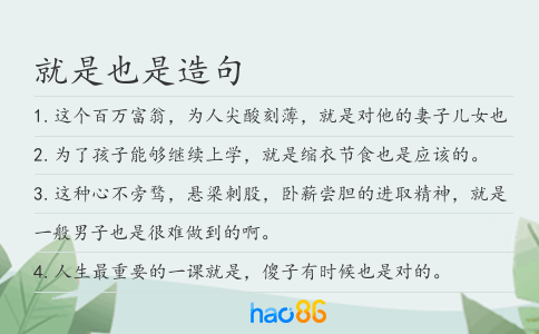 复制好查造句频道为您提供2025年的就是也是造句相关内容,造句频道小编原创了10条的就是也是造句内容,频道内容适合一二年级的小学生参考!!