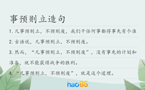 1、凡事预则立,不预则废,我们干任何事都得事先有个准备。 hAo86.com