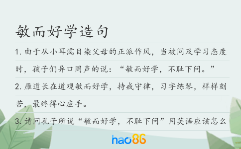 复制好查造句频道为您提供2025年的敏而好学造句相关内容,造句频道小编原创了13条的敏而好学造句内容,频道内容适合一二年级的小学生参考!!