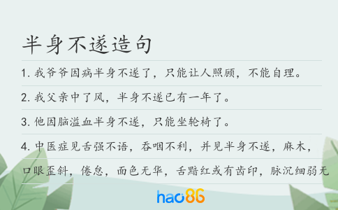 复制好查造句频道为您提供2025年的半身不遂造句相关内容,造句频道小编原创了34条的半身不遂造句内容,频道内容适合一二年级的小学生参考!!